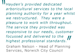 Using our experience working within the Local Planning Authorities as Tree Officers, Hayden’s act as in-house consultants for Local Authority Planning Departments dealing with all tree and planning issues.